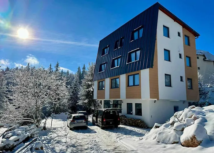 Om van uw vakantie in Jahorina te genieten, verblijf in 8-slaapkamer Apartmani Ris Jahorina, gelegen ongeveer 1 km van Jahorina Olympic Centre en binnen 10 minuten wandelen van Poljice.
